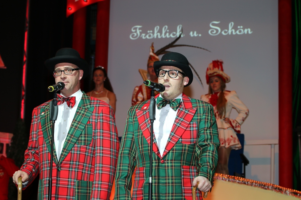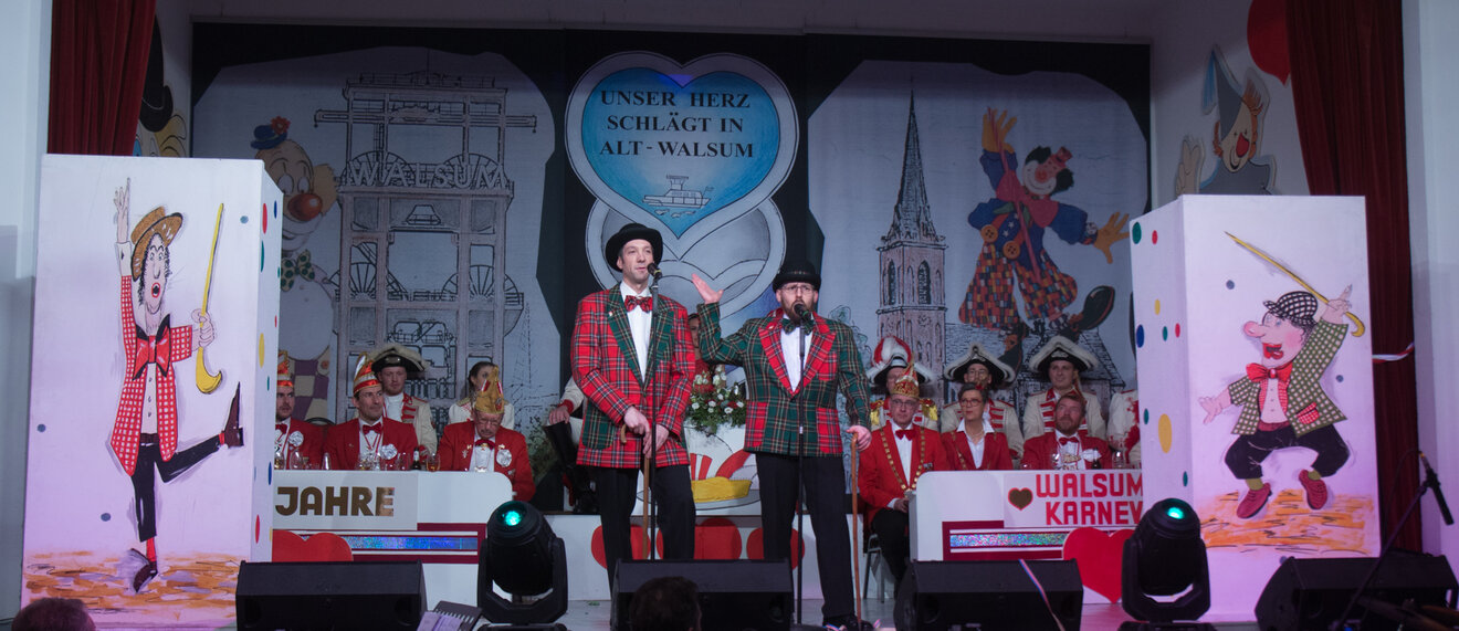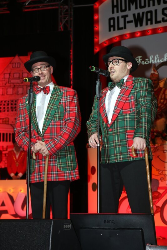 Beide sind mit der Karnevalsgesellschaft Alt-Walsum „groß“ geworden. Ihre Väter Hugo Overlöper und Ludger Molitor sind seit vielen Jahren aktive Mitglieder den Rot-Weißen. Hugo bei den „Stutenkerlen“ und Ludger u. a. als halbes „Molle-Duo“. Aaron und Bastian sind seit der Session 2002/ 2003 Mitglieder der „Alt-Walsumer Ehrengarde“ und haben schon seit längerem überlegt, noch „etwas anderes“ auf der Bühne zu machen. Die Idee, das Duo „Fröhlich und Schön“ wieder aufleben zu lassen, wurde schon vor zwei bis drei Jahren geboren, doch zunächst hatte ihr Studium Vorrang. Nun wollen beide das Publikum mit den traditionsreichen Figuren für sich begeistern. Ursprünglich wurde das Narren-Duo von Andreas Bergsch und Viktor Opgen-Rhein geprägt und dann jahrzehntelang von Hermann Lemkamp und Heinz „Thüs“ Bienen gestaltet. Sie wissen, dass es eine große Herausforderung ist, in die Rollen von Herrn Fröhlich und Herrn Schön zu schlüpfen. Um ihrem Anspruch gerecht zu werden und den beiden Figuren ihren eigenen Charakter zu geben, haben Aaron und Bastian die Parodie individuell angepasst, wollen aber dem traditionellen Grundprinzip treu bleiben. Für die Gestaltung Ihrer Parodie bedienen sie sich aktueller Themen aus den Bereichen Politik, Sport und Kultur.